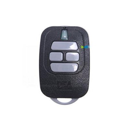 Black 4 channels remote Rolling Code, with 12V alkaline battery, range 50-150m (with antenna tuned outdoors). Frequency: 433.92 MHz.