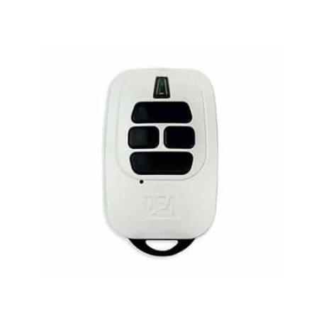 4 channels white remote control. Rolling Code coding, with alkaline 12V battery, range 40-120m ( with aerial tuned outdoors). 868 MHz.